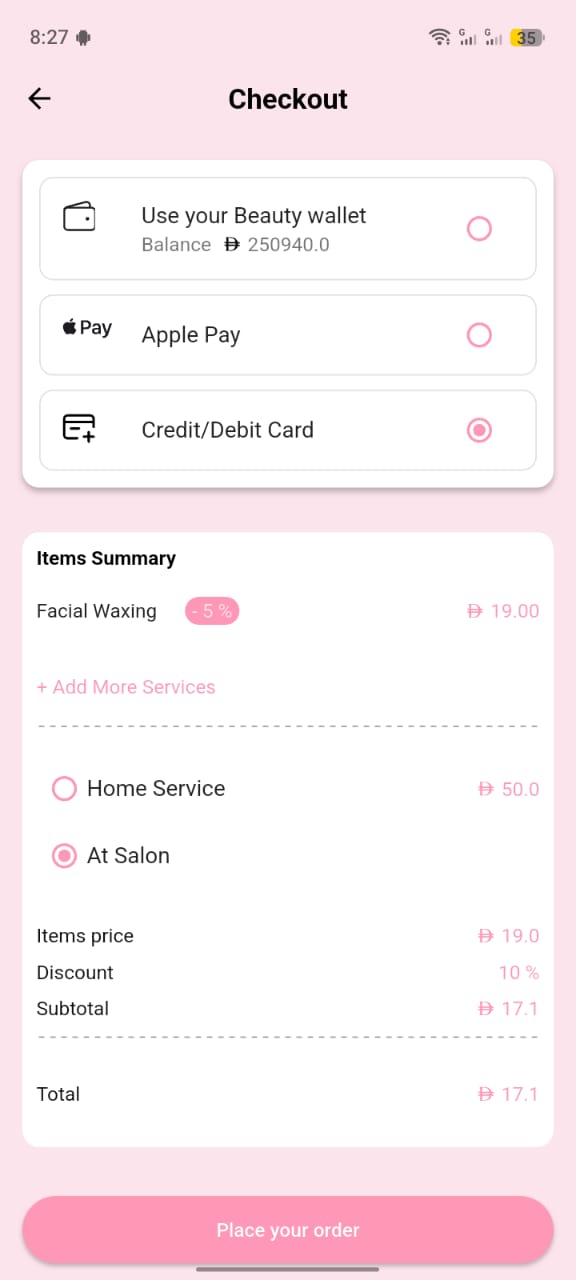 For salon owners, we provide a powerful platform to grow their business with ease. Through the dedicated admin dashboard, salon managers can handle appointments, staff schedules, payments, and client data — all in one place. With advanced data security and smooth payment integration, our app ensures both customers and salon owners enjoy a seamless, reliable, and modern experience every time.